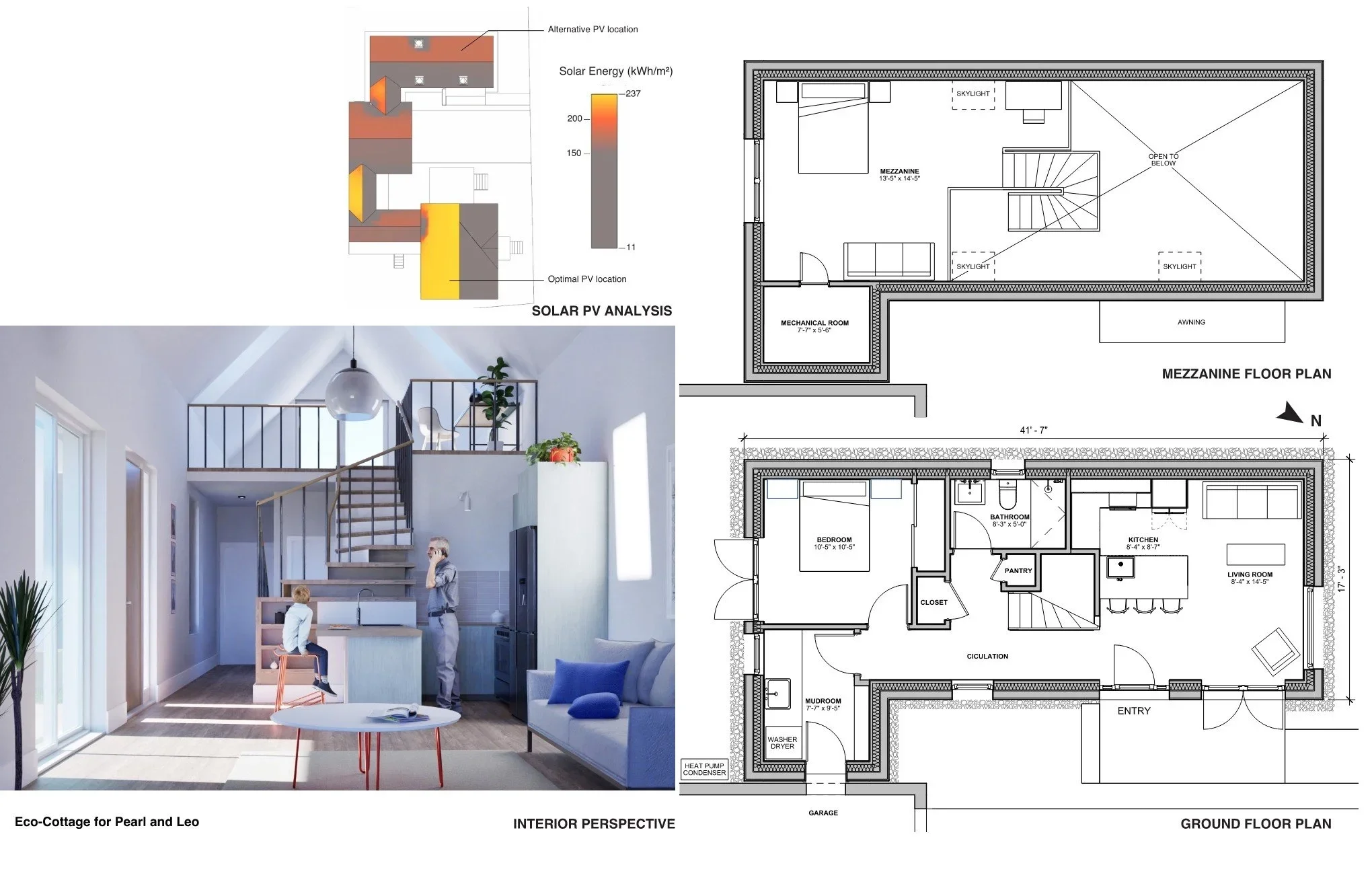A competition submission for the Monadnock Region ADU Design Challenge in New Hampshire looking into criteria for sustainability, cost effectiveness, and innovation. We propose a simple, contextual, prefab-friendly design that relates to the formal and material language of the existing neighborhood. The proposal incorporates innovative, energy-saving Passive House design standards.