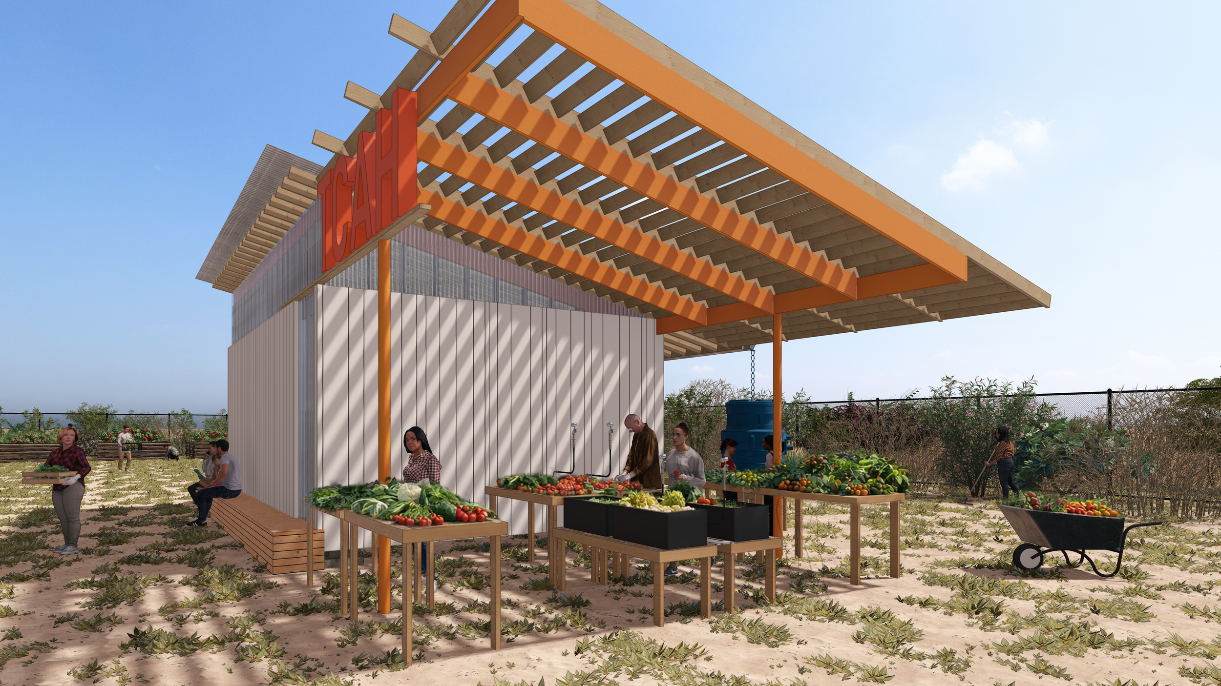 Sited on a farm in the Rockaways operated by The Campaign Against Hunger (TCAH), a local nonprofit dedicated to providing access to healthy food for all New Yorkers, the shed was designed on a pro bono basis and a tight budget.